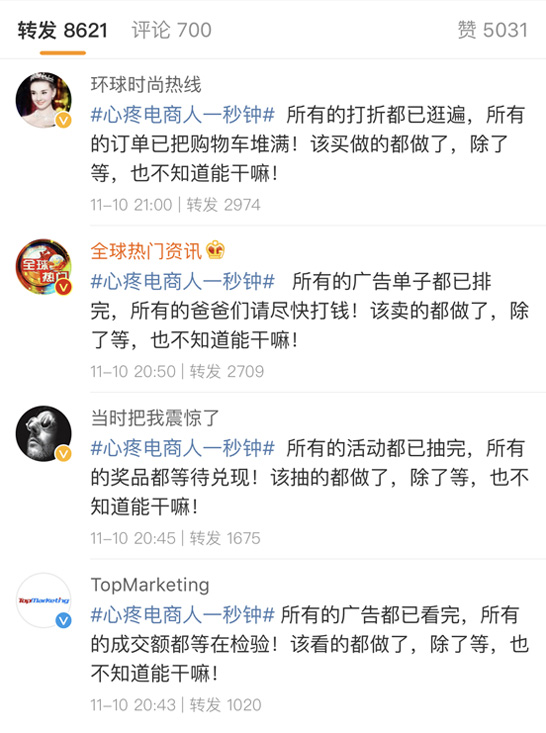 While all people were at a state of waiting for 0 o’clock, any content related to Double 11 Shopping Festival may trigger customers’ forwarding enthusiasm.