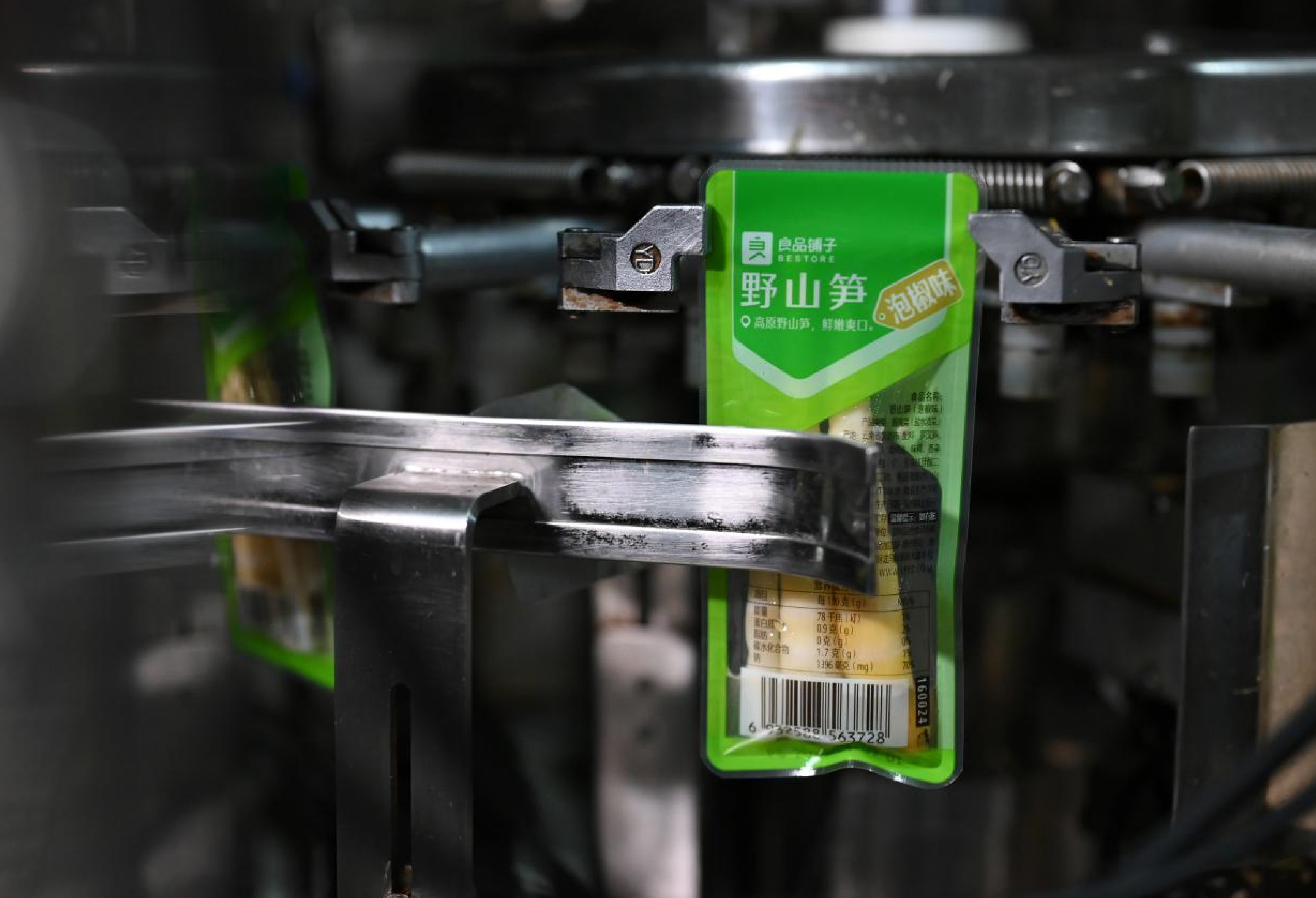 “一根20多厘米長的鮮筍,良品只取筍尖及以下8-13厘米,相當(dāng)于精華中的精華,一袋100斤脫掉筍衣的筇竹筍,大概30%可以用作良品鋪子野山筍零食的原料。”大關(guān)縣天星鎮(zhèn)魚孔村收筍經(jīng)紀(jì)人鄢永康介紹,在當(dāng)?shù)氐募庸すS,經(jīng)過清洗、脫筍殼、壓榨去澀等簡單工藝處理后成為初級生產(chǎn)加工級別的半成品原料,第一時間送往位于昆明富民縣的良品鋪子供應(yīng)商——昆明品世食品有限公司十萬級無塵智能車間。經(jīng)過殺青、腌制等工序,最大限度保持新鮮,再經(jīng)過脫鹽、熟化、清洗、調(diào)味、罐裝、巴氏殺菌等十幾道工序,保留山珍的原始風(fēng)味、確保食品安全,并佐以云南有名的小米辣,口感更加豐富、有層次。